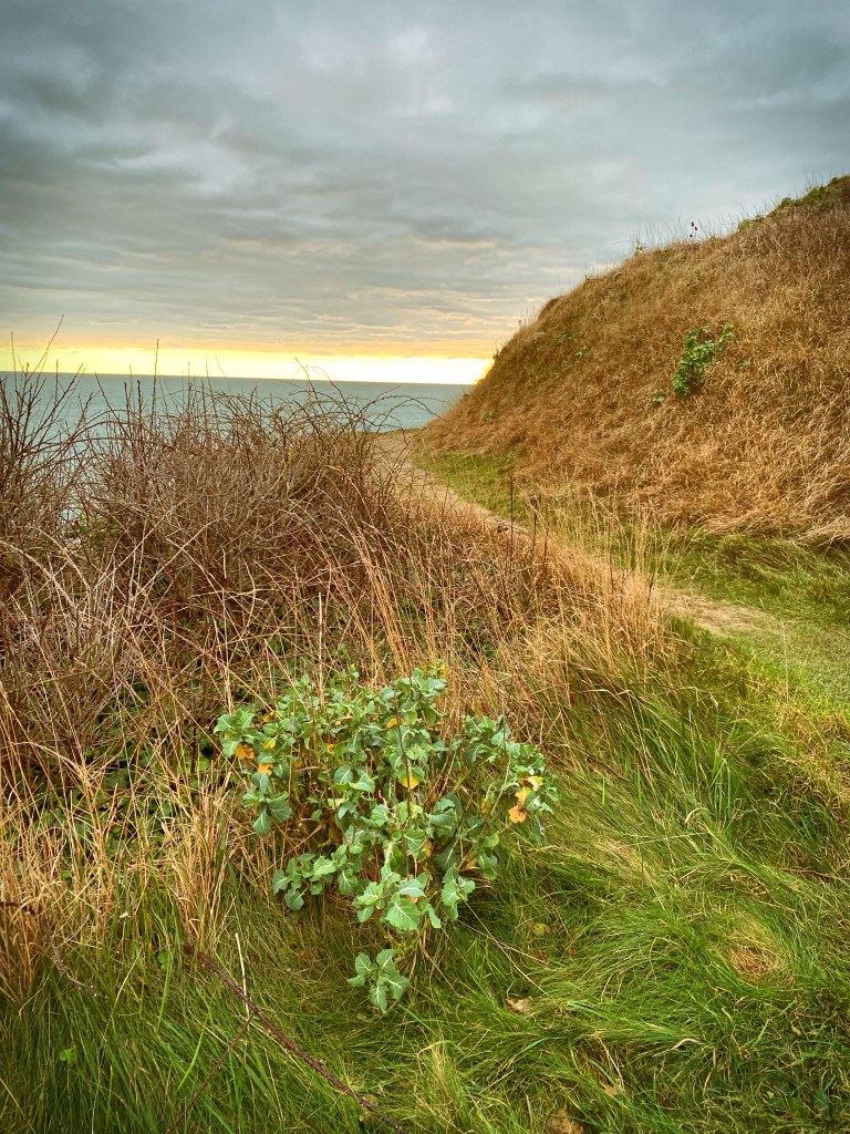Sunday finds us in wellies, striding out towards Winspit. Initially reluctant to be torn away from Roblox (“Dad – how many times? It’s not called ‘Roadblocks’”), The Boy is won over once he clocks a herd of Jerseys in the fields surrounding the short path to the clifftop. As he takes pictures on his phone, the bovines stare back, chewing balefully. On the return leg, as if we’d planned the whole jaunt, The Boy spots his second favourite creatures (behind horses but ahead of cows): four young deer that, from a safe distance, gingerly pick their way through the shrub land to eye this curious young stranger. In motionless awe, he stands on a rock and watches them leap away over the purple gorse.