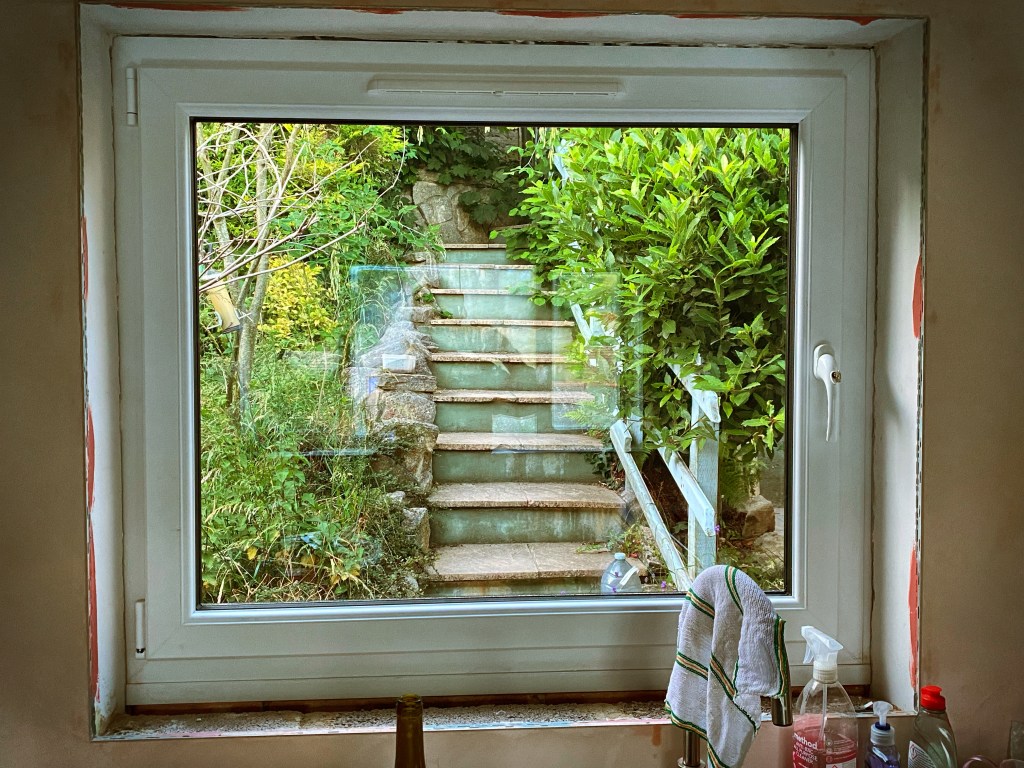 The final ‘windows and doors’ segway remains the big sliding doors that will reveal the glorious view from our main living area. While we wait for the planning consultation period and permission from Dorset Council, we make do with the original blown units that offer tiny glimpses, through a mist of condensation, of what will be. For a while, these were analogous to our shaky grasp of the building’s potential. Thankfully, a few months on, our resolve and the builders’ tenacity has made this vision much clearer.